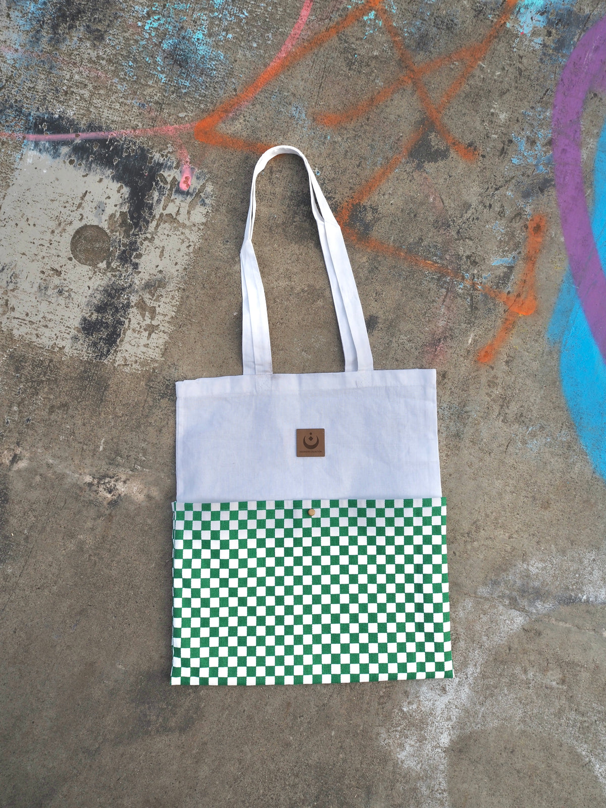 Tragetasche Jutebeutel mit Seitentaschen Checker-Muster (grün)